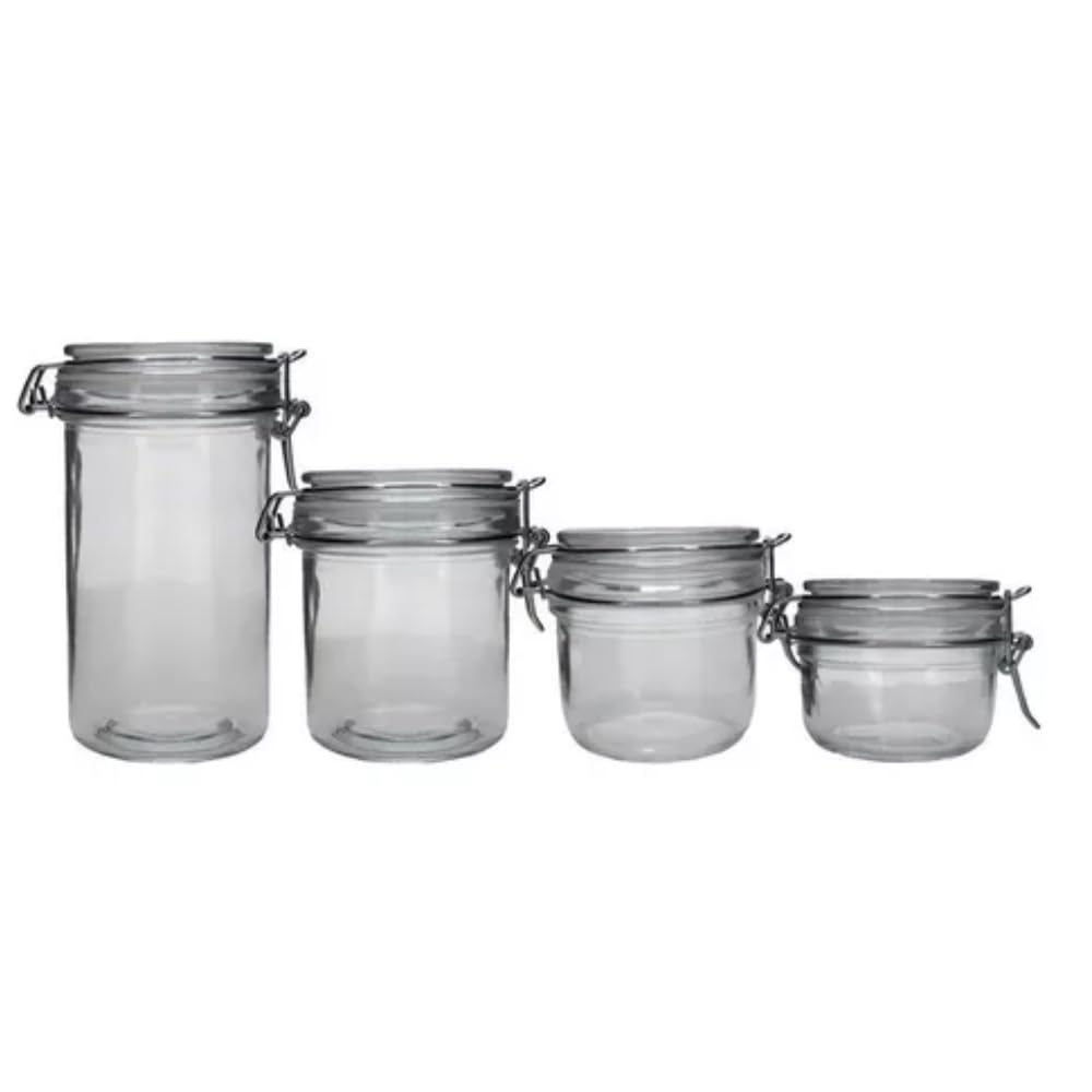 Jogo Com 4 Potes Herméticos De Vidro Com Vedação Em Borracha 500ml, 300ml, 250ml, 150ml Resistentes Ideal Para Armazenar Mel Grãos Cereais Temperos