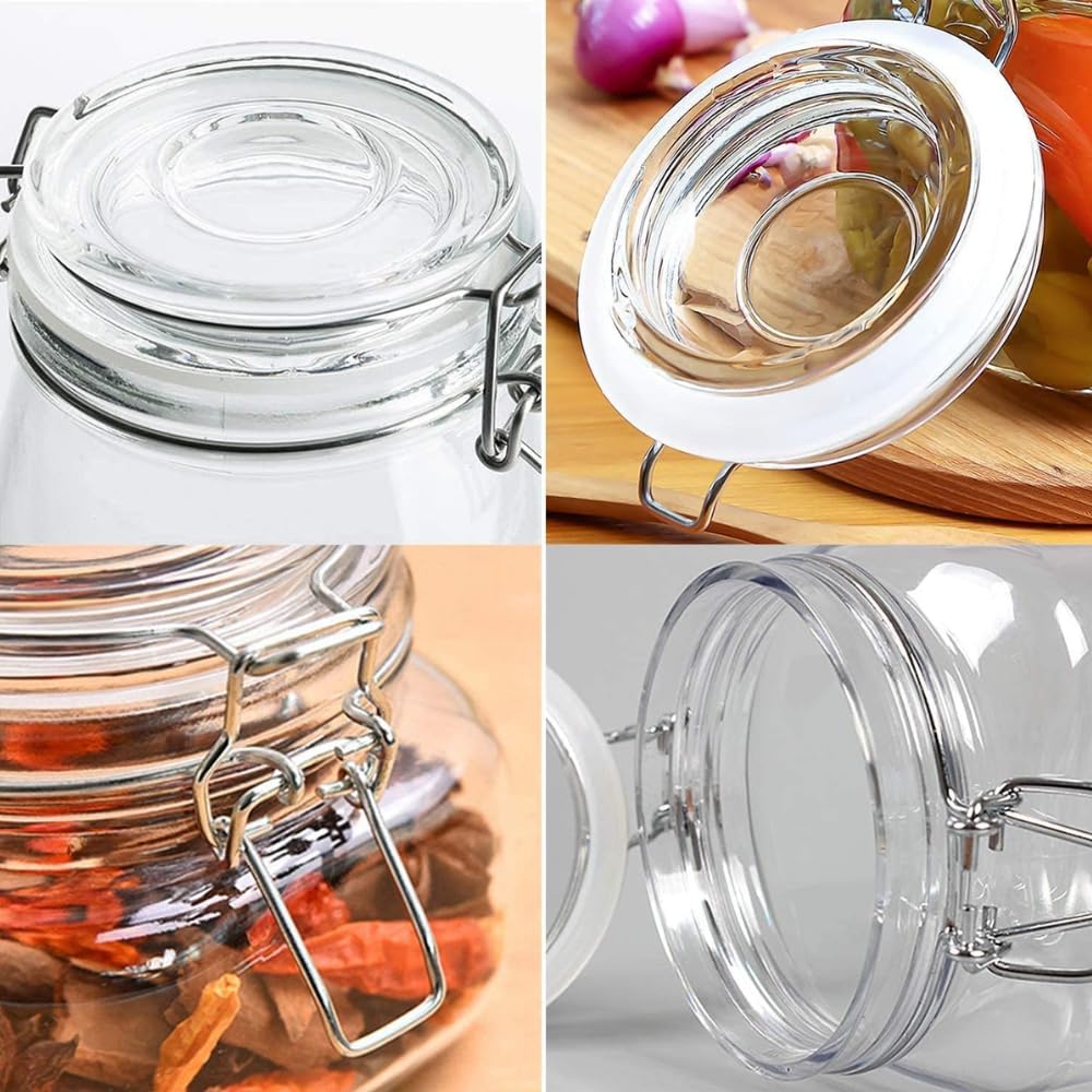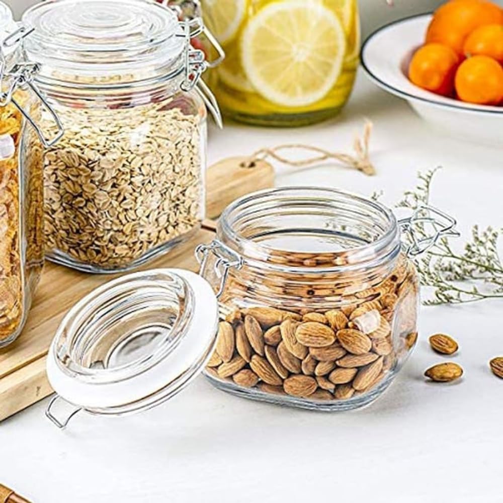 • VRIAS CAPACIDADES Com capacidade de armazenamento de at 500ML, esses potes so perfeitos para organizar sua despensa de forma prtica e funcional. Seu sistema de fechamento hermtico, composto por um fecho em metal e borracha interna, garante uma vedao perfeita, mantendo os alimentos frescos por mais tempo.